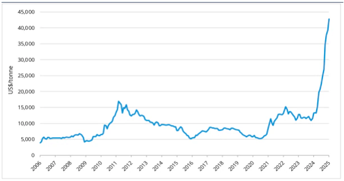 与锑不同,锡价多年来一直被冶炼厂所“接受”。早在上世纪80年代,锡价就已达到每吨2万美元左右。在锑价飙升期间,该元素被视为锑的替代品。但一个鲜为人知的事实是,我们每年约有2.5亿美元的锡损失到炉渣中,且无法回收。